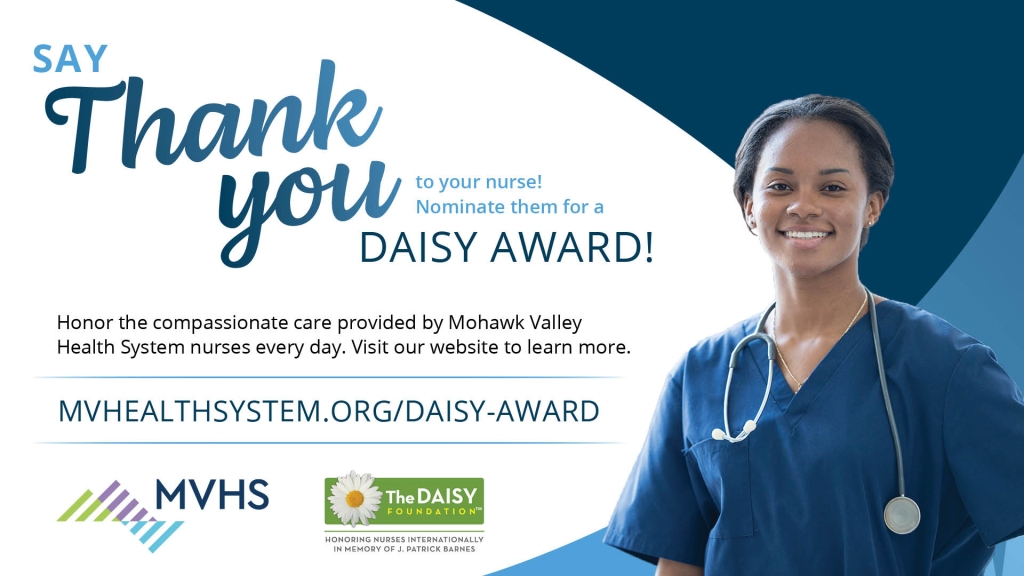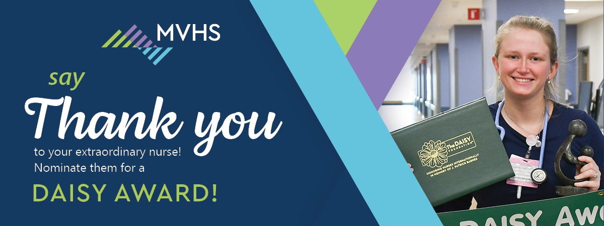 The DAISY Award rewards and celebrates the extraordinary compassionate and skillful care given by nurses every day. MVHS is proud to be a DAISY Award Partner, recognizing our deserving nurses with this special honor. To find out more about the program, visit https://www.daisyfoundation.org/.