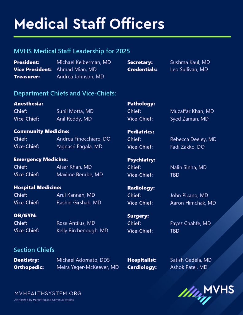 | Sunil Motta, MD | Chairman, Department of Anesthesia |