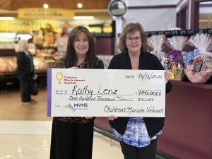 Photo Caption: (from left to right) Debbie Wainwright, CMN Program Director at MVHS Foundation, presents the prize check to Kathy Lenz, the 2025 Children’s Miracle Network Hospitals $100,000 Miracle Drawing winner.